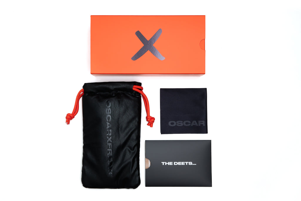 Fitted with Blue light lenses for versatile sun protection and a crisp visual finish. Created 100% in-house at Oscar & Frank Design.