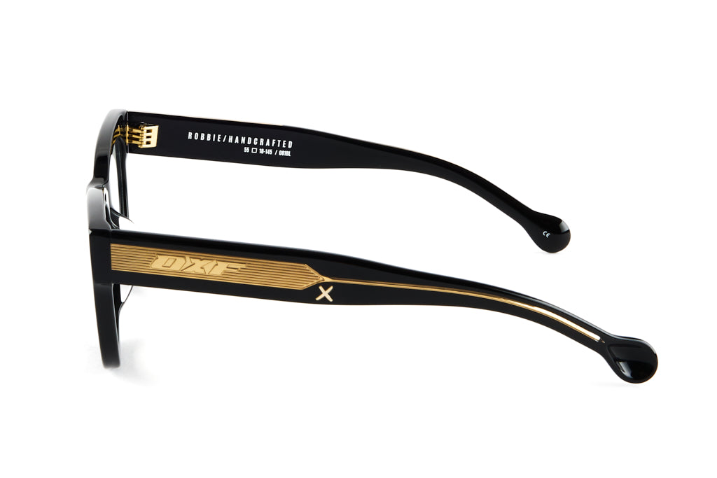 The ROBBIE is a brand new SS/25 addition to the OXF lineup — a unisex frame with a bold, structured silhouette and thick temples, designed to bring a modern edge to a classic rectangle shape. Finished with deep beveling, sculpted spoon arms and custom gold hardware for that signature OXF detail.